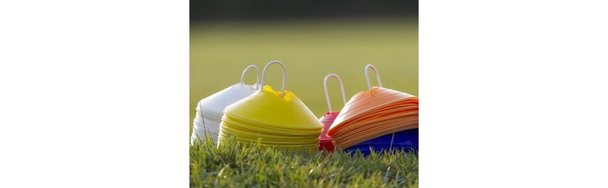 Setul contine 20 de jaloane (copete/palariute) de diverse culori si suport pentru acestea.Sunt recomandate pentru antrenament, sali de sport etc. Realizate din PVC.
