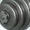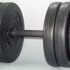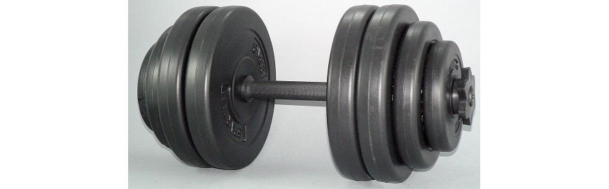 Gantera reglabila 15 kg contine: – bara cu diametrul de 30 mm, 45 cm lungime, filet la margini, greutate: 1 kg;- 8 greutati: 4 x 2.5 kg, 2 x 1.25 kg, 2 x 0.75 kg. Discurile sunt realizate din plastic umplute cu ciment.Sigurantele de prindere sunt din plastic.