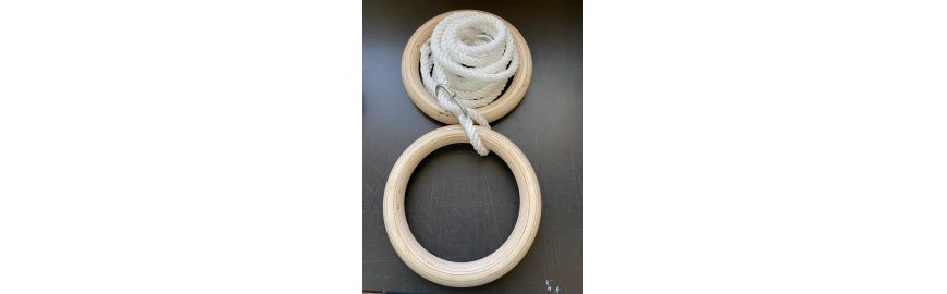 Inelele pentru gimnastica, cu diametrul de 24 cm, realizate din lemn de fag, legate printr-un sistem de prindere cu funie rezistenta. Sunt recomandate pentru efectuarea exercitiilor de forta si echilibru, pentru imbunatatirea potentei musculare a partii superioare a corpului si abdomenului. Antrenamentul la inele are un grad de dificultate suplimentar, data fiind instabilitatea intrumentelor.Ideale si pentru antrenamentele CrossFit. Reglarea inaltimii se face usor, cu ajutorul carabinelor metalice rezistente. Setul contine: – 2 inele pentru gimnastica din lemn, cu diametrul de 24 cm; – 2 funii cu lungimea de 160 cm; – 2 carabine metalice; – 2 inele de prindere metalice.Greutate maxima utilizator: 80 kg.