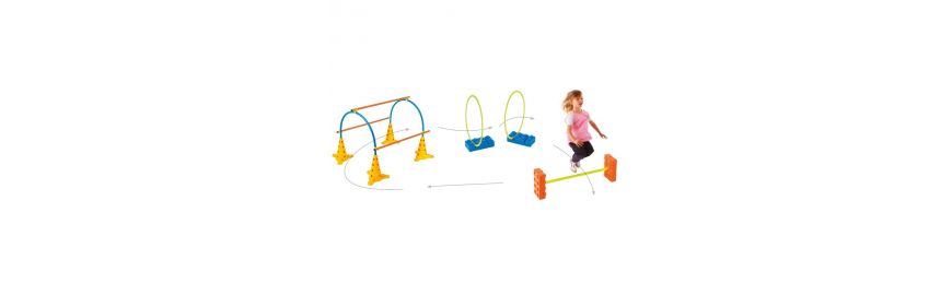 Setul echilibru „sus-jos”, comercializat de ART SPORT TOTAL, include 4 conuri, 4 caramizi din PVC, 2 semicercuri, 3 bastoane de 1 m, 1 baston 0,8 m, 2 cercuri plate cu diametru de 50 cm, 3 perechi de clipsuri jalon.
