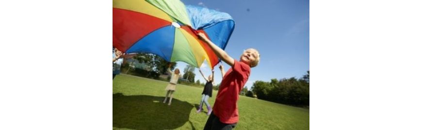 Parasuta curcubeu, diametrul de 7 m, comercializata de ART SPORT TOTAL. Jocul cu parasuta asigura exercitii pentru intregul corp, pentru toata lumea! Este un mod minunat pentru dezvoltarea coordonarii fizice de baza. Inspira multe tipuri de activitati pentru grupuri de copii sau adulti. Este realizata din poliester colorat, usor si rezistent la foc. Are manere foarte rezistente. Parasuta are o franghie rezistenta, de 10 mm grosime, cusuta in marginea exterioara, oferind posibilitatea ca un numar mare de persoane sa se joace in acelasi timp. Incarcatura maxima este de 10 kg.