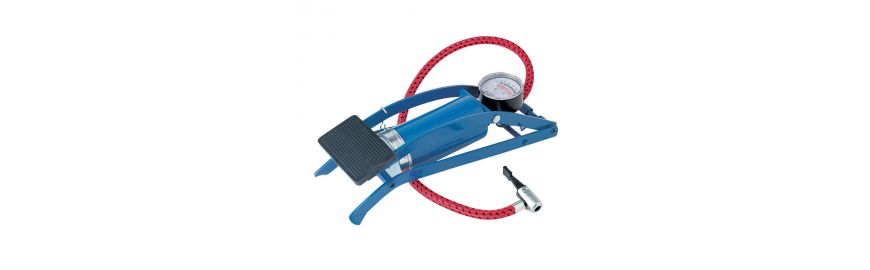 Pompa de picior, comercializata de ART SPORT TOTAL, cu rama si cilindru din otel, cu diametrul de 50 mm si lungimea de 100 mm. Aparat de masura a presiunii, calibrat atat in psi (0-100 psi), cat si in bar (0-7 bar). Pompa este echipata cu cablu flexibil, de 450 mm lungime.