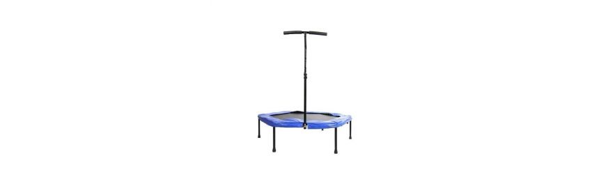 Trambulina 136 cm, forma hexagonala, cu maner reglabil pe inaltime, pentru o mai buna utilizare, foarte silentioasa.Constructie robusta, rezistenta si stabila.Diametru trambulina: 136 cm.Cu 42 prinderi foarte rezistente.Protectie captusita, pentru prinderi, culoare albastru (care se poate scoate).Cadrul si ghidonul sunt din otel, cu protectie la rugina.Latime ghidon: 50.50 cm.Numar de picioare: 6 + 1 (manerul),  fiecare cu capace de cauciuc anti-alunecare.Maner reglabil pe inaltime, care se poate scoate.Inaltime maner reglabil: intre 98.5 cm si 115 cm.Inaltime suprafata de sarit de la sol: 29 cm.Diametru suprafata de sarit: 88 cm.Latime prinderi: 15.50 cm.Suprafata de sarit – cu ritm ridicat.Instrument de montaj – inclus.Potrivita pentru antrenamentele de fitness dinamice care combina salturile rapide și lente cu elementele de putere. Acest tip de antrenament ajuta la imbunatatirea sistemului cardiovascular si la cresterea capacitatii pulmonare si a rezistentei. De asemenea, va permite sa va exersati toti muschii.Calitate superioara si durata lunga de viata.Pentru interior si exterior.Utilizare: copii +14 ani si adulti. Greutate maxima utilizator: 100 kg.Certificari: TUV GS, EN71.Greutate trambulina: 8.45 kg.