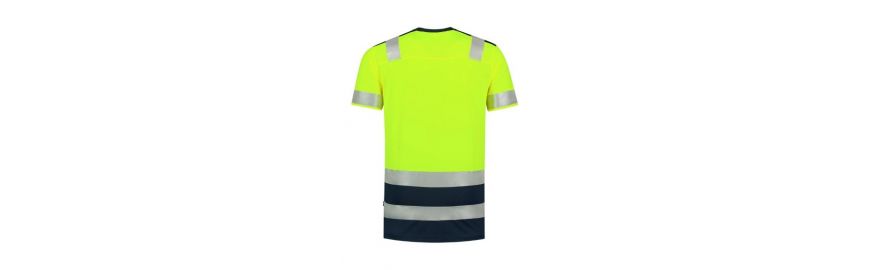 Tricou unisex High-Visibility bicolor, flourescent, calitate superioara. Birdseye, 50% poliester, 50% poliester Cooldry; imbracaminte de vizibilitate ridicata; benzi reflectorizante; maneci scurte; guler rotund; protectie UV UPF 40+; model format din doua culori; model conform cu standardul EN ISO 20 471:2013 (clasa 1); Numar produs Tricorp: 103006. Specificatii: 180 g/mp, 100% polyester.Ideal pentru purtare la locul de munca, personal auxiliar diverse sporturi, cand se calatoreste cu bicicleta, motocicleta etc.Se spala la 60 °C.Marimi: S, M, L, XL, XXL, 3XL.Culori: galben reflectorizant, portocaliu reflectorizant.La cerere, se poate imprima.