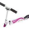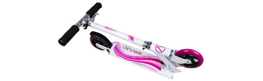Trotineta Girl 125 mm, pentru fete, pliabila, comercializata de ART SPORT TOTAL. Realizata din aluminiu, cu manere comode.Ghidon reglabil pe inaltime: 60-72-82 cm.Marime ghidon: 33.50 cm.Dimensiune platforma: 35×10 cm.Lungime totala trotineta: 65 cm.Roti PU, diametrul 125×24 mm.Rulmenti ABEC 7.Furca din otel, pentru o stabilitate maxima a directiei.Culoare: alb-roz.Greutatea maxima utilizator: 80 kg.Greutate: 2.7 kg.Certificare EN 14619.